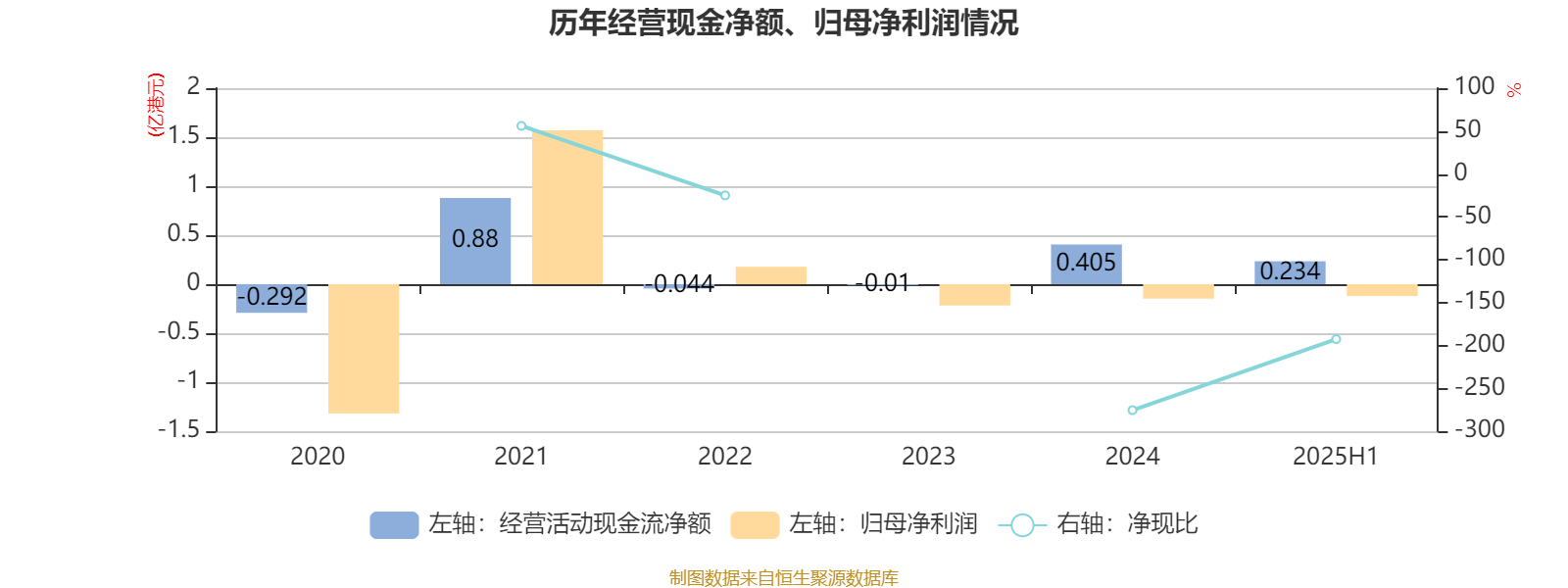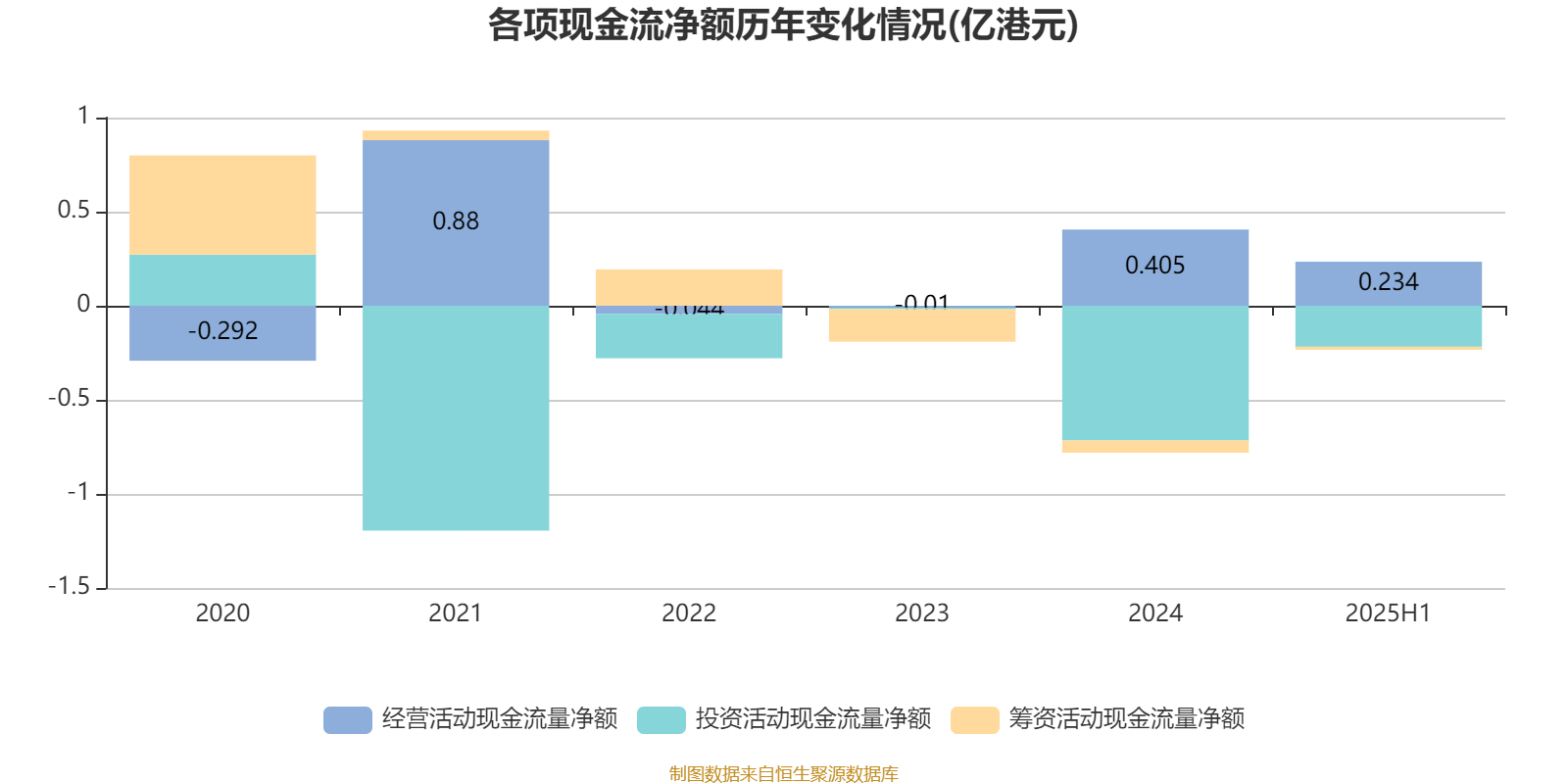 2025年上半年,公司经营活动现金流净额为2336.1万港元;筹资活动现金流净额-162.1万港元;投资活动现金流净额-2181.7万港元。