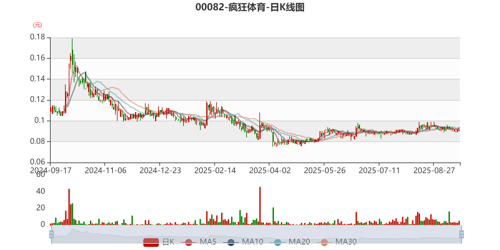 中证智能财讯疯狂体育(00082)9月17日披露2025年中期报告。报告期内,公司实现营业收入1.53亿港元,同比下降26.77%;归母净利润亏损1212.9万港元,上年同期亏损1660.2万港元;经营活动产生的现金流量净额为2336.1万港元,上年同期为-1492.1万港元;据报告显示,疯狂体育基本每股收益为-0.0027港元,平均净资产收益率为-1.74%。