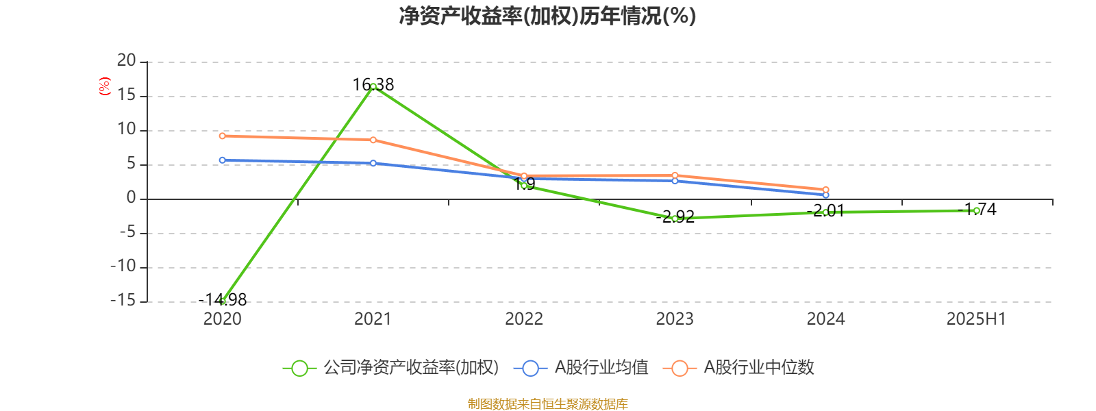 2025年上半年,公司平均净资产收益率为-1.74%,较上年同期下降0.99个百分点。